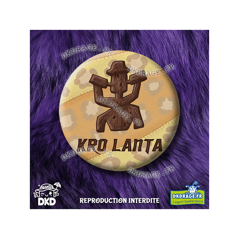 Ce badge "KRO LANTA", avec son totem robuste, est un clin d'œil ironique aux épreuves d'une journée de bande... Il faut être fort pour affronter la mauvaise bière qu'on nous sert (souvent).