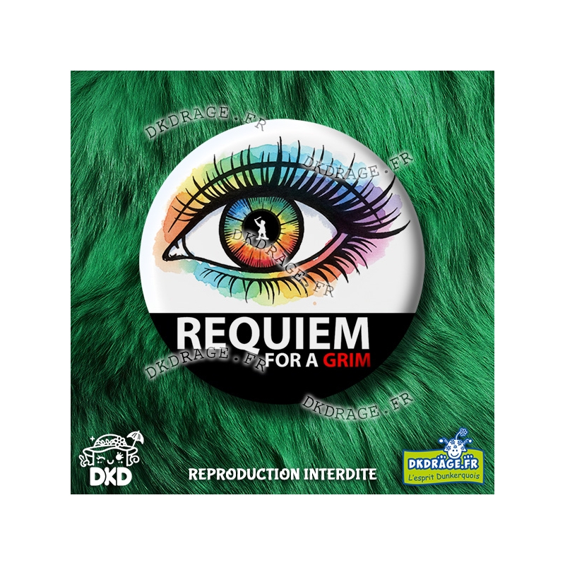 Découvrez "Requiem for a Grim", un badge unique qui rend hommage à l'esprit inégalable du Carnaval de Dunkerque. Cette création parodie le célèbre film "Requiem for a Dream" en y injectant toute la couleur et la folie de la fête dunkerquoise. L'œil multicolore, avec sa pupille représentant Jean Bart, symbolise la joie intense et la participation intergénérationnelle qui caractérisent cet événement. A chacun son grim, maquillage joyeux et créatif que chacun arbore fièrement, du plus jeune au plus âgé.