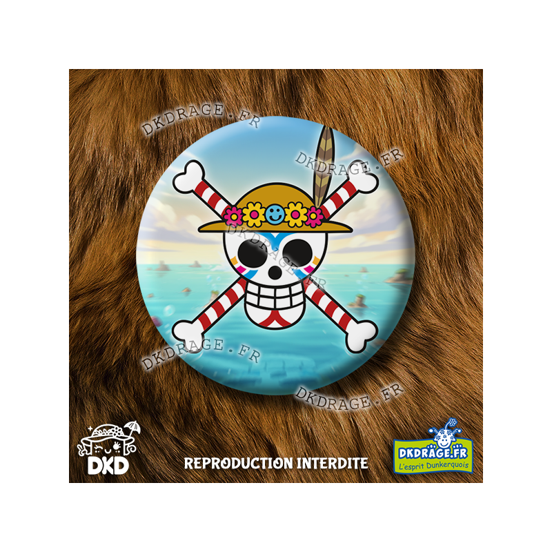 Le badge "ONE VICE" Un clin d’œil pirate plein de malice, revisité à la sauce carnaval de Dunkerque. Couleurs vives, humour et esprit festif garantis !